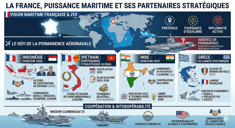- Missions « Clemenceau » (2019, 2025): déploiement en Indopacifique.