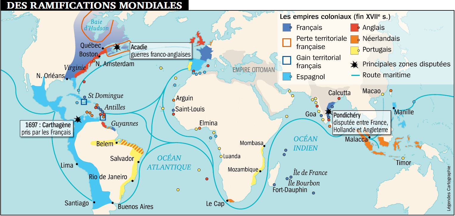 Le Prix de la Paix et l'Essor Britannique : La France sauva son territoire national et ses "frontières de fer", mais elle commença à mesurer la montée de l'hégémonie maritime anglaise. Les Britanniques profitèrent de leur position de force pour s'emparer de points stratégiques comme Minorque en Méditerranée (ainsi que Gibraltar). Surtout, ils démantelèrent une partie de la Nouvelle-France : au Traité d'Utrecht, la France perdit l'Acadie, Terre-Neuve et la Baie d'Hudson. Ce fut le premier grand revers du premier empire colonial français.