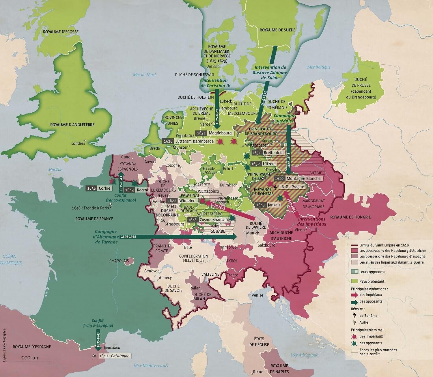 Le Front Anti-Habsbourg : Composé des princes protestants allemands, du Danemark, puis de la Suède du génie militaire Gustave Adolphe. Leur combat portait sur la « liberté germanique », soit l'autonomie des États face au pouvoir centralisateur de l'Empereur.